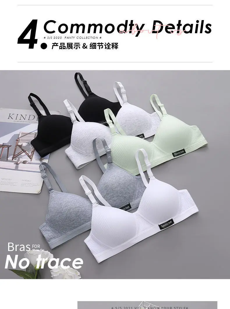 3pcs Women Thin Wireless Bra Girl Seamless Push Up Bra Student Comfort V-Shaped Underwear Adolescent Breathable Comfort Lingerie