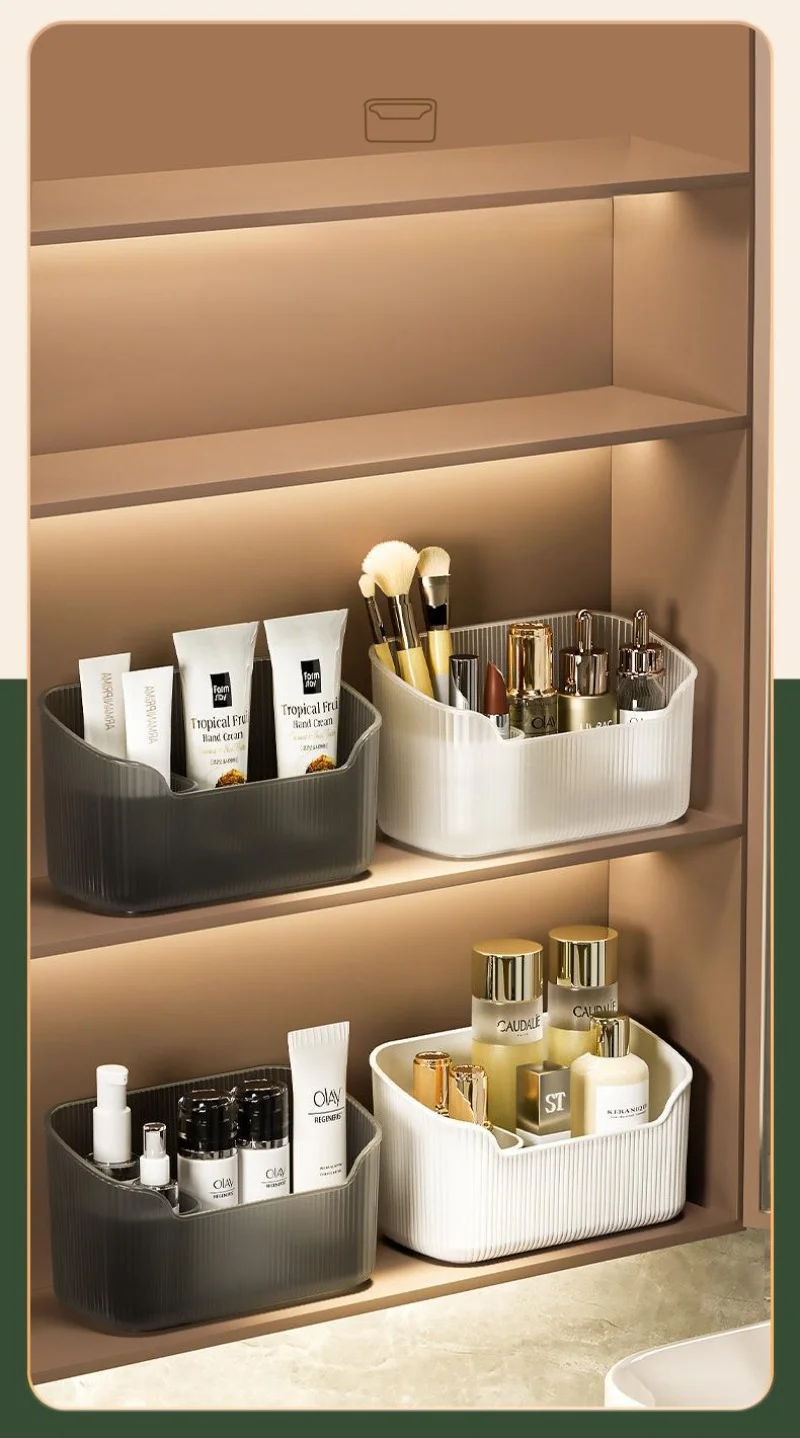 Large Capacity Cosmetic Storage Box, Multifunctional Makeup Organizer for Bathroom & Bedroom – Mirror Cabinet Design Storage