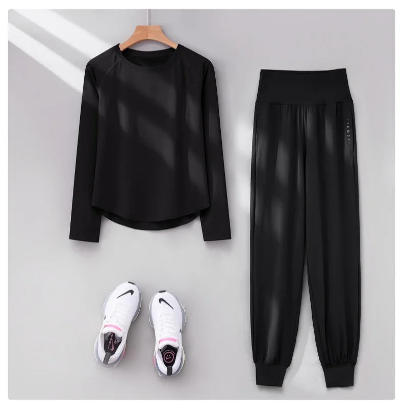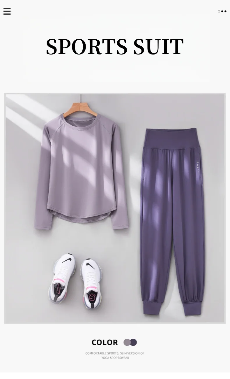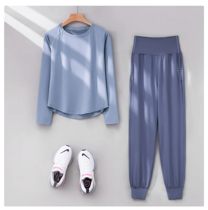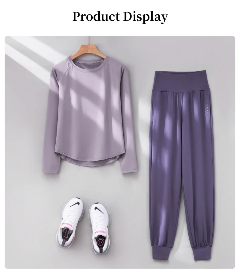 DRUR Two Piece Gym Set Women Long Sleeve Sports Top High Waist Sweatpants Suit Autumn Active Wear 2 pcs Tracksuit Fitness Outfit