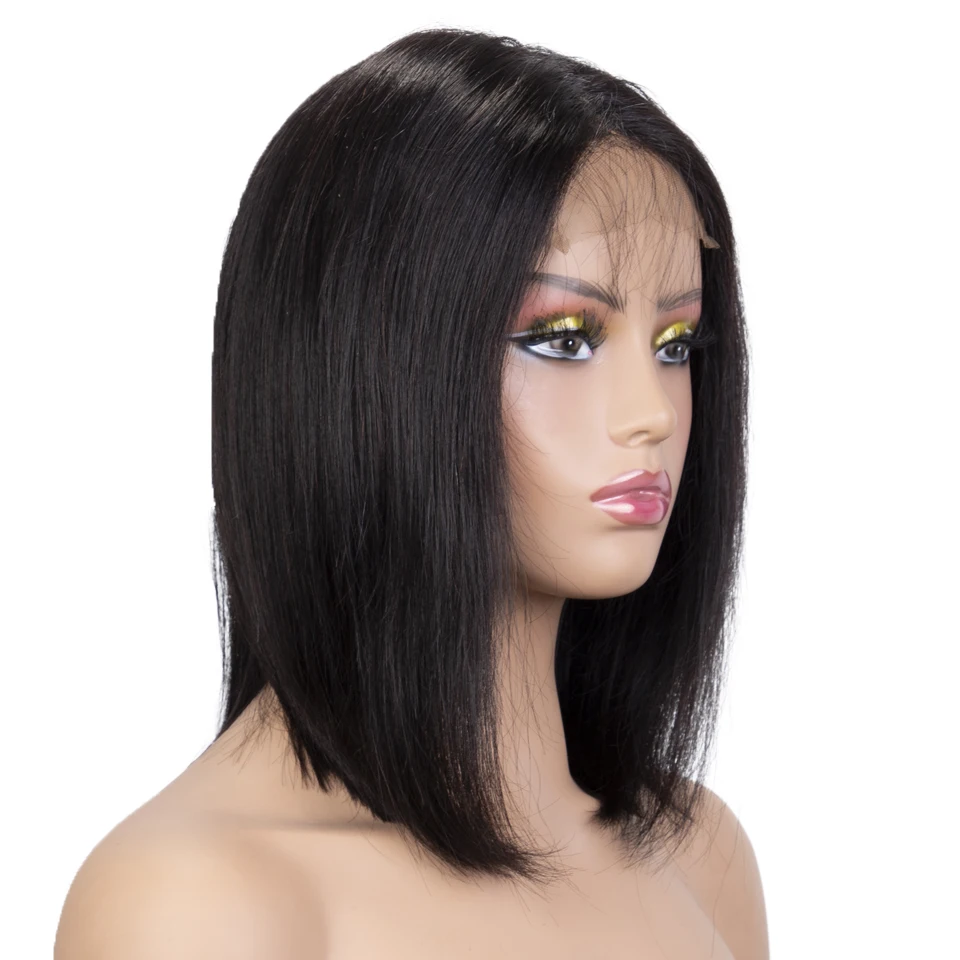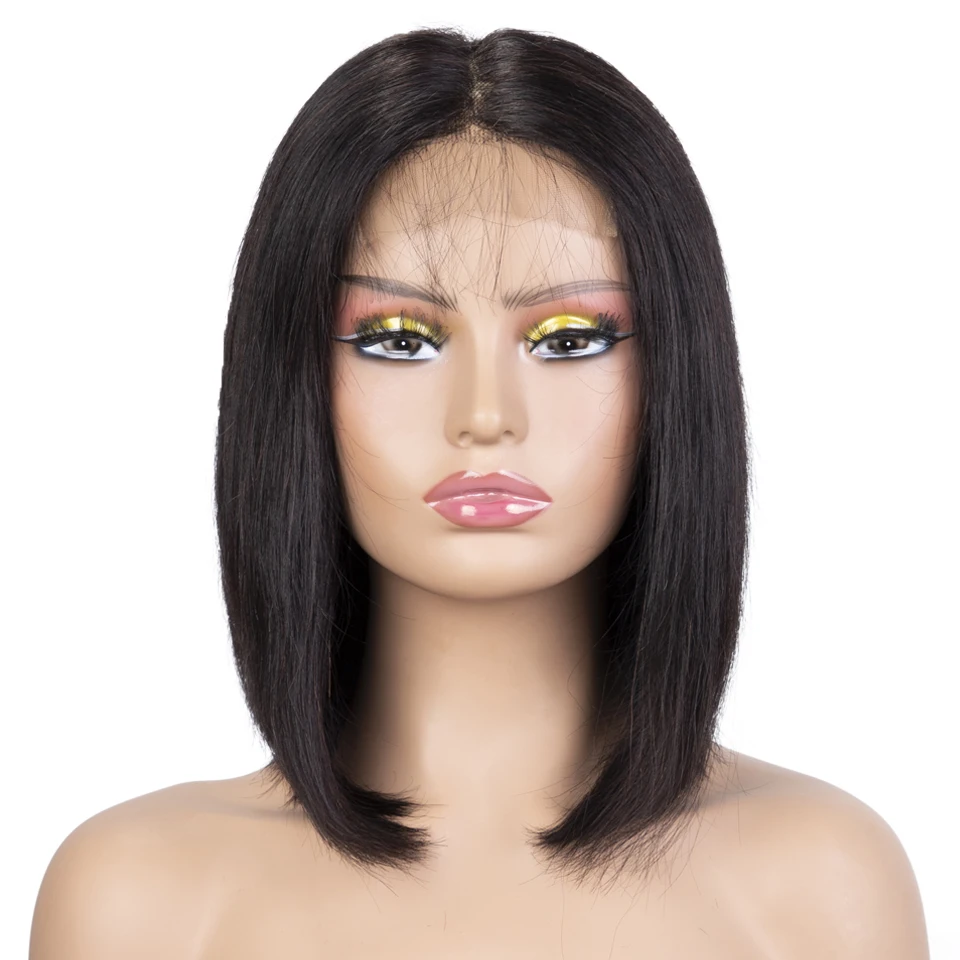 Sleek Bob Human Hair Wigs For Women Short Straight Remy Brazilian Hair Wigs 4X4 Lace Closure Wigs 12 Inch Short Black Lace Wigs