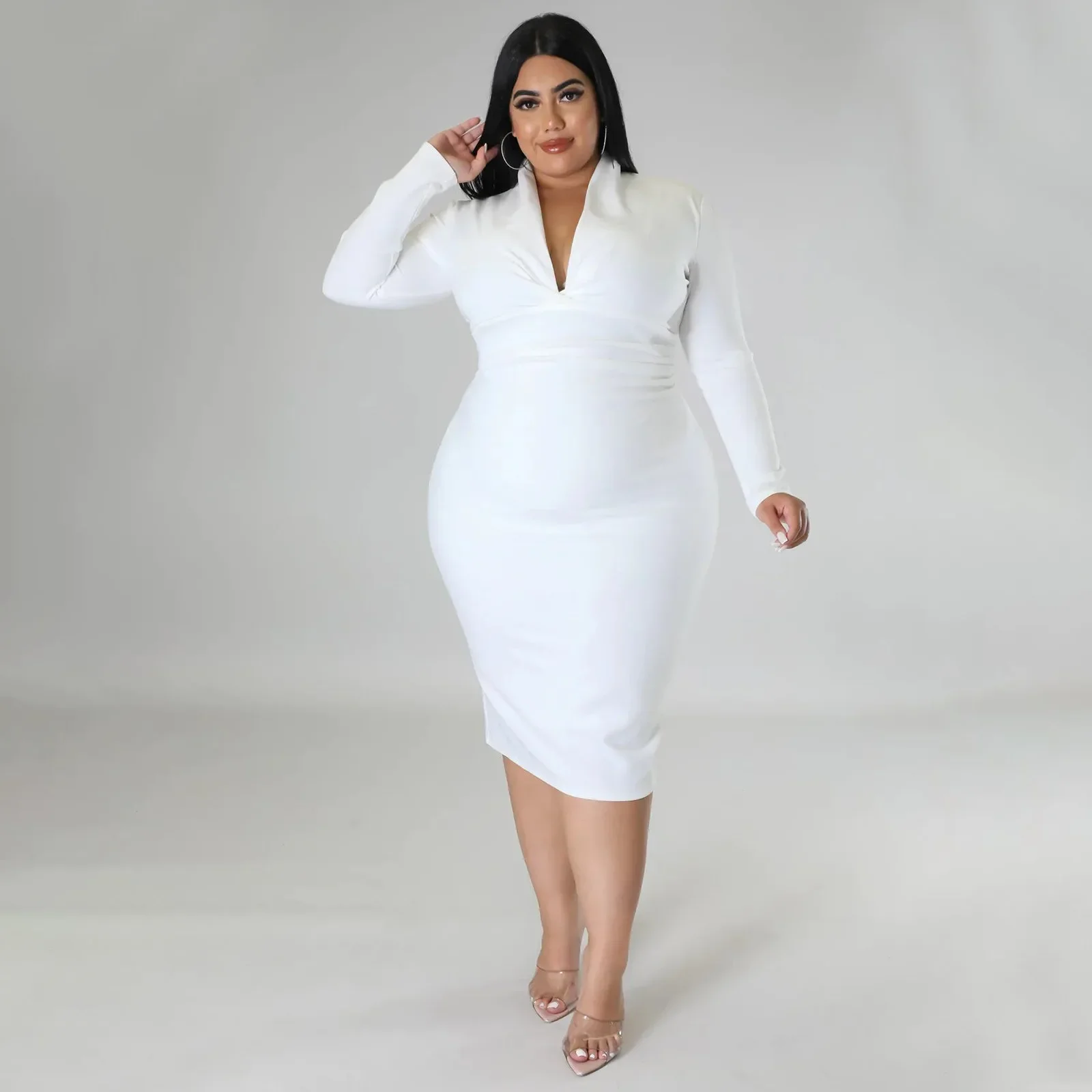 • V-neck Zipper :The V-neck zipper design adds a touch of casual elegance, making this dress versatile enough for any occasion.