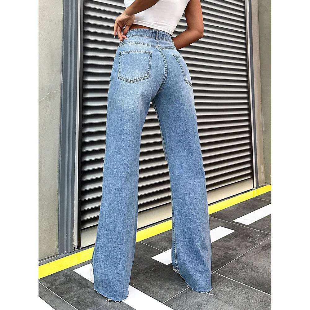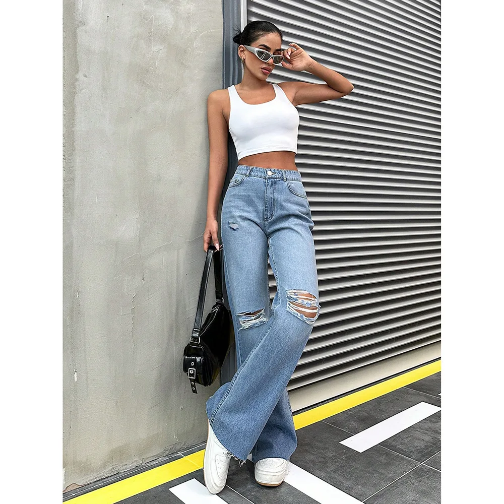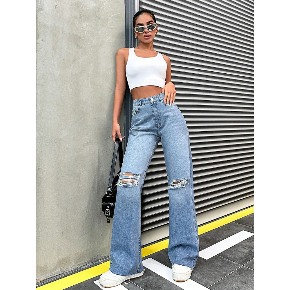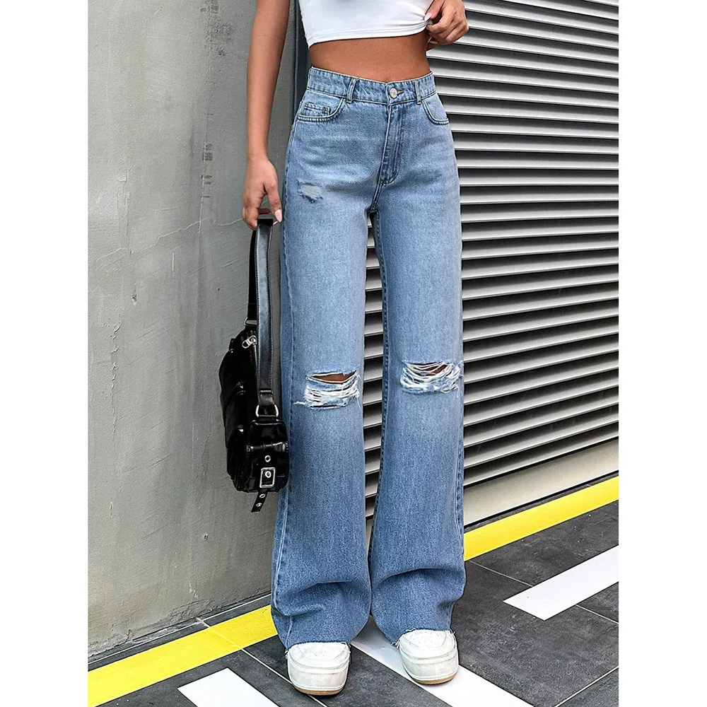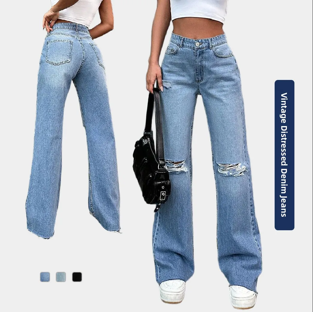 With their straight-leg cut and distressed detailing, these jeans embody the latest street style trends. They're ideal for those who want to stay ahead of the fashion curve.