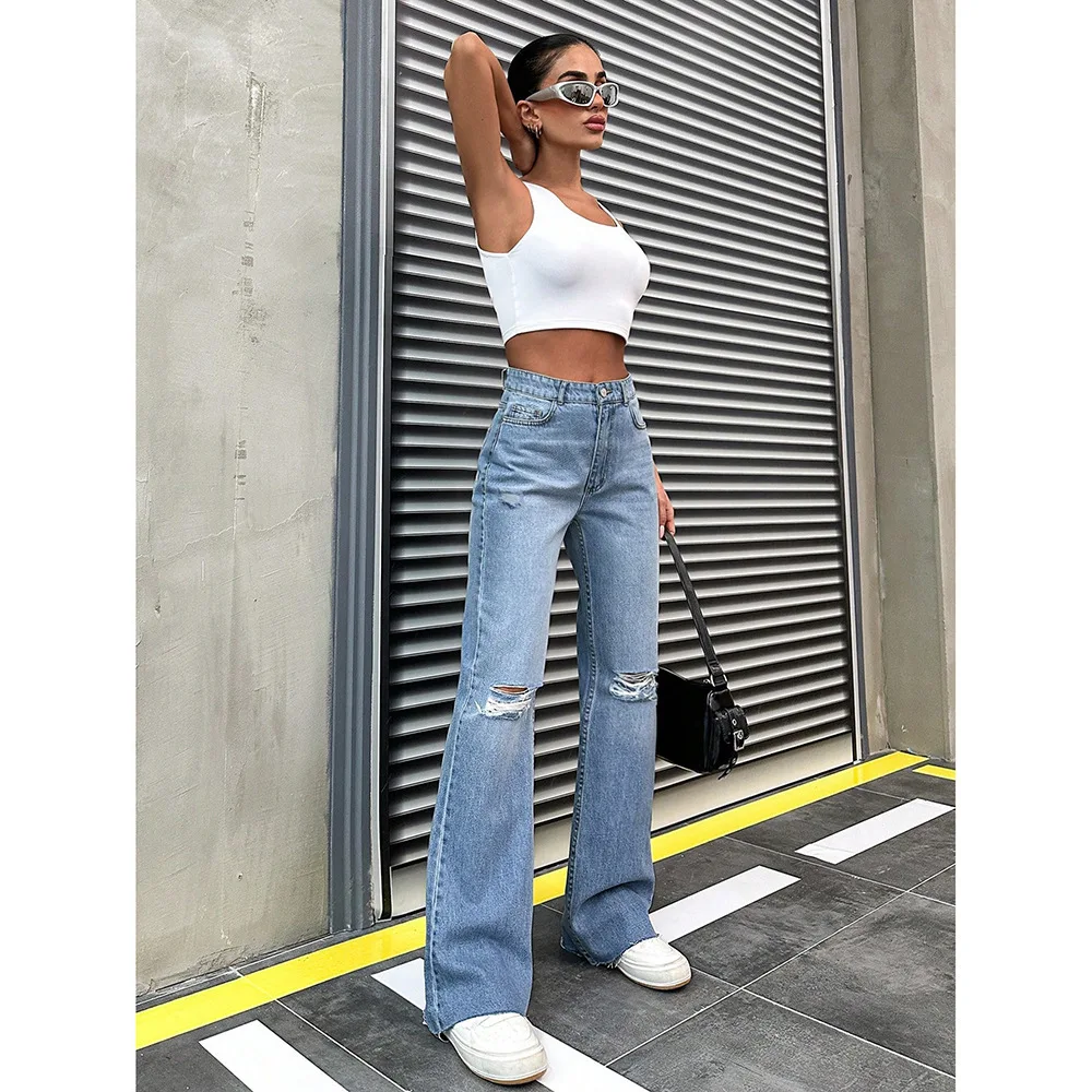The ripped denim style adds a rebellious edge to these jeans, making them perfect for those who love to stand out in a crowd. It's a bold statement piece that can transform any casual outfit into a stylish look.