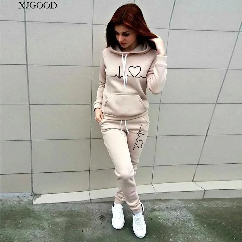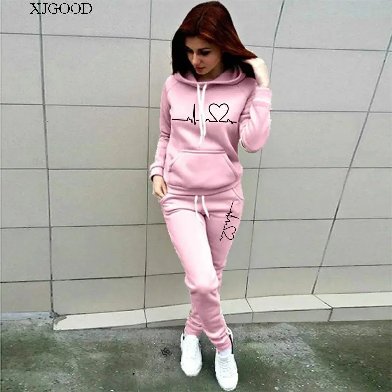 This two-piece set includes a hoodie and trousers, offering versatility in styling.