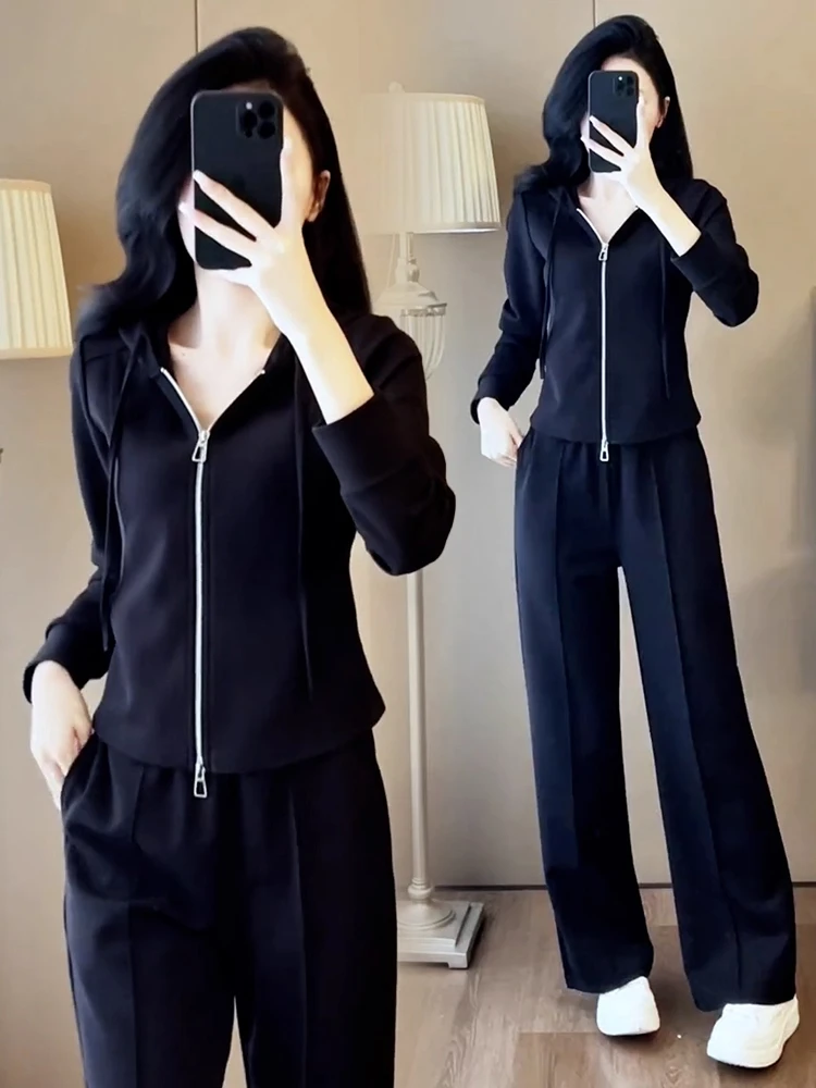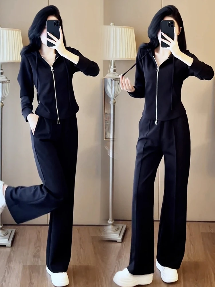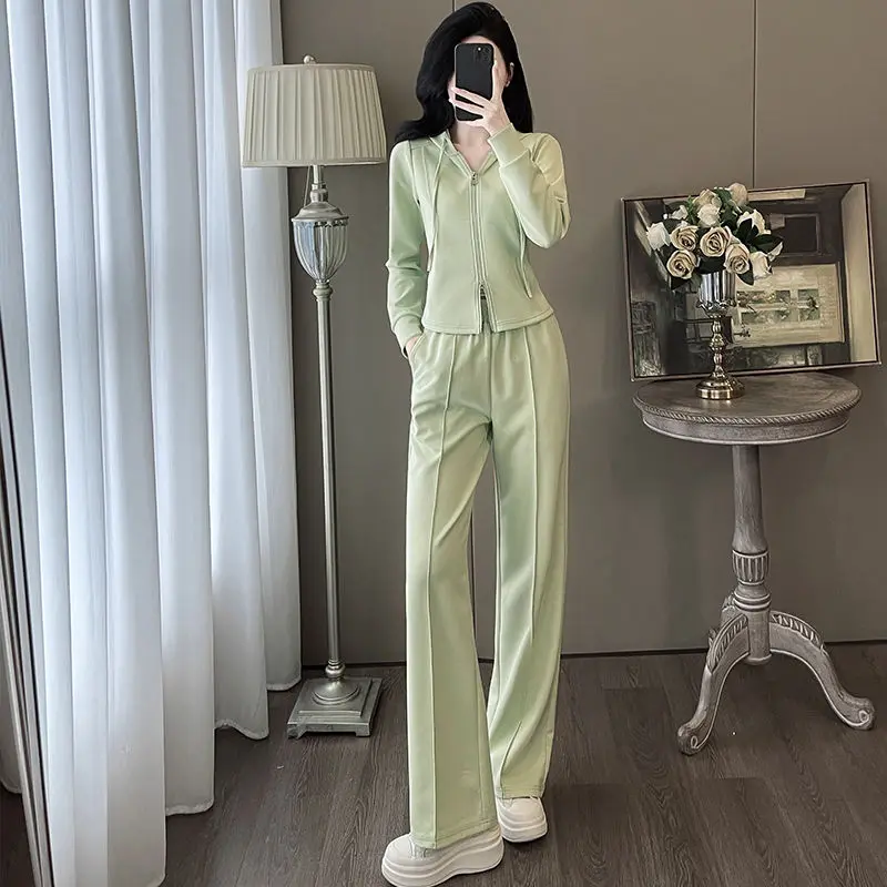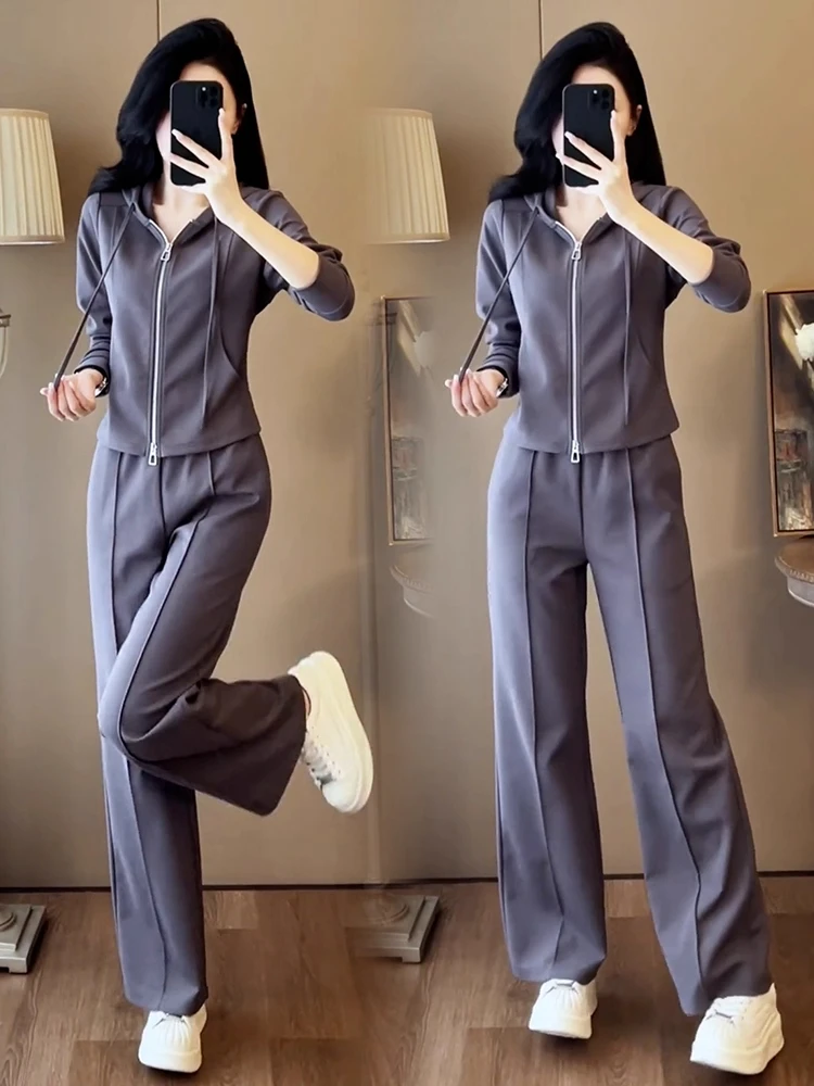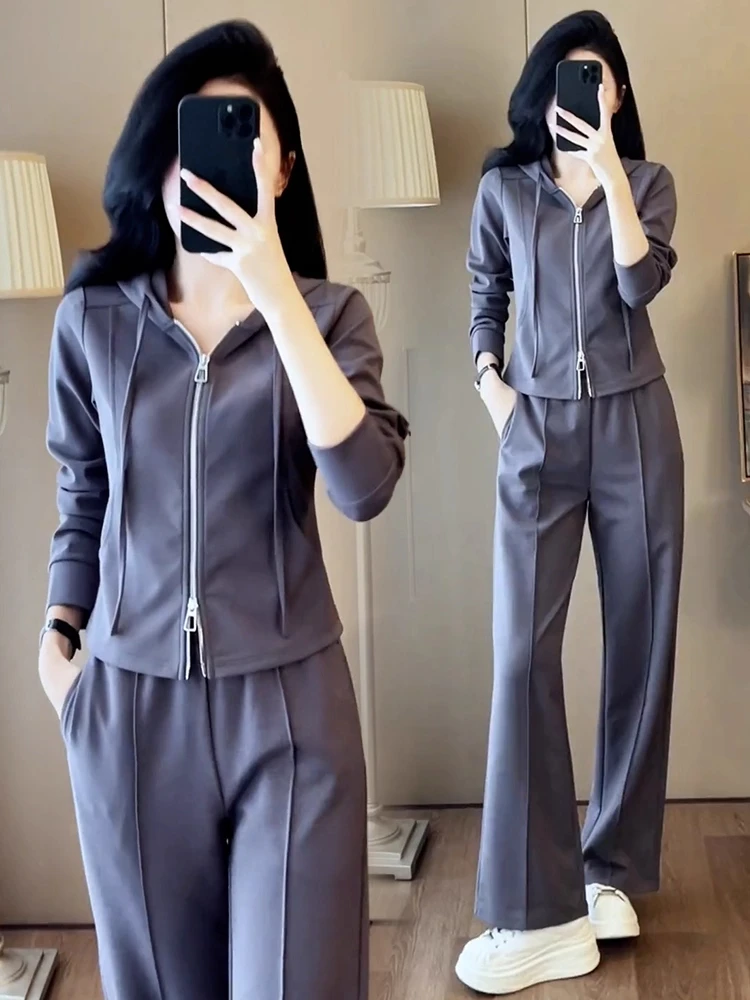 This two-piece set includes a hoodie and pants, offering versatility and convenience for your wardrobe.