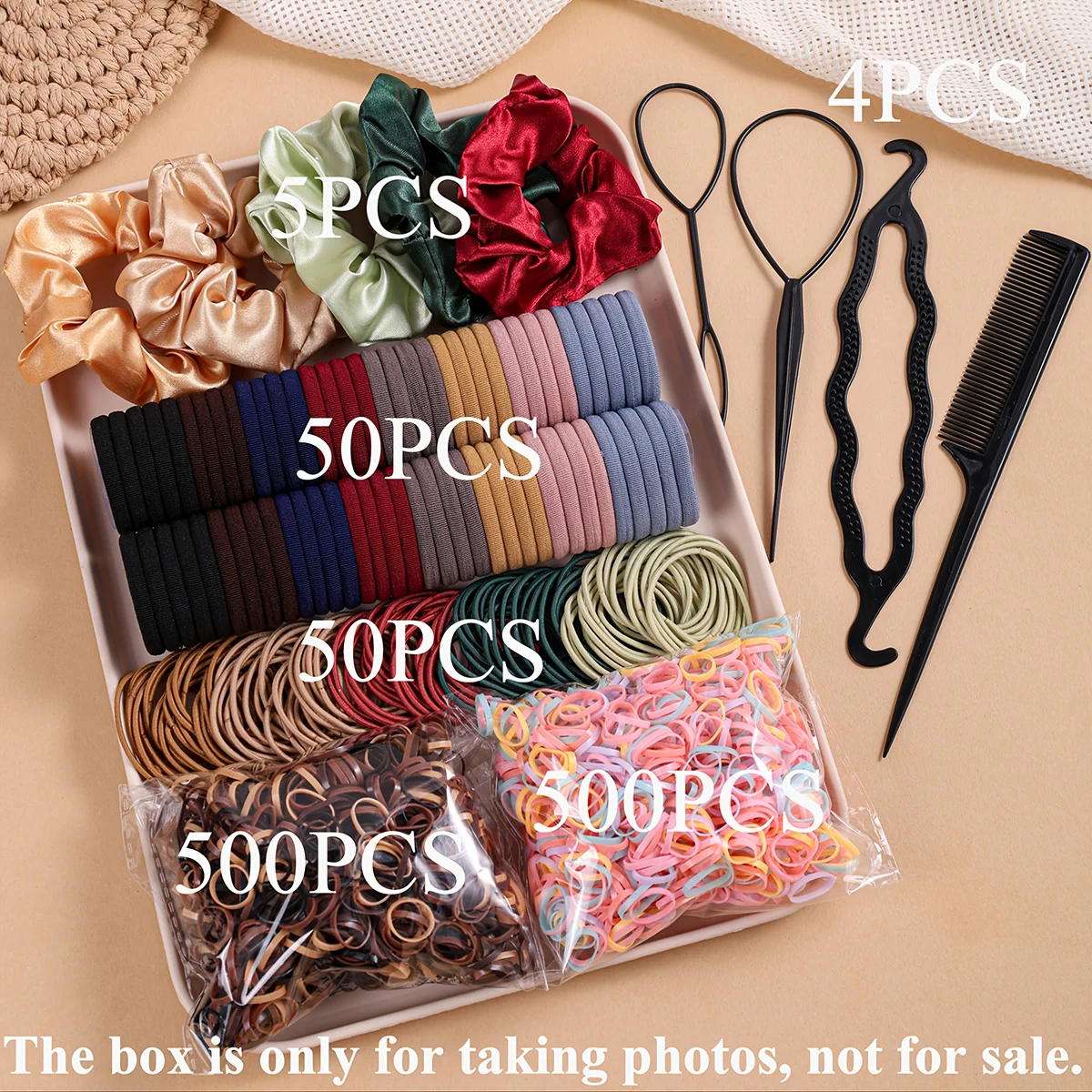 This 1109pcs set offers a wide range of hair accessories, including scrunchies, rubber bands, and headbands, perfect for styling dark hair.