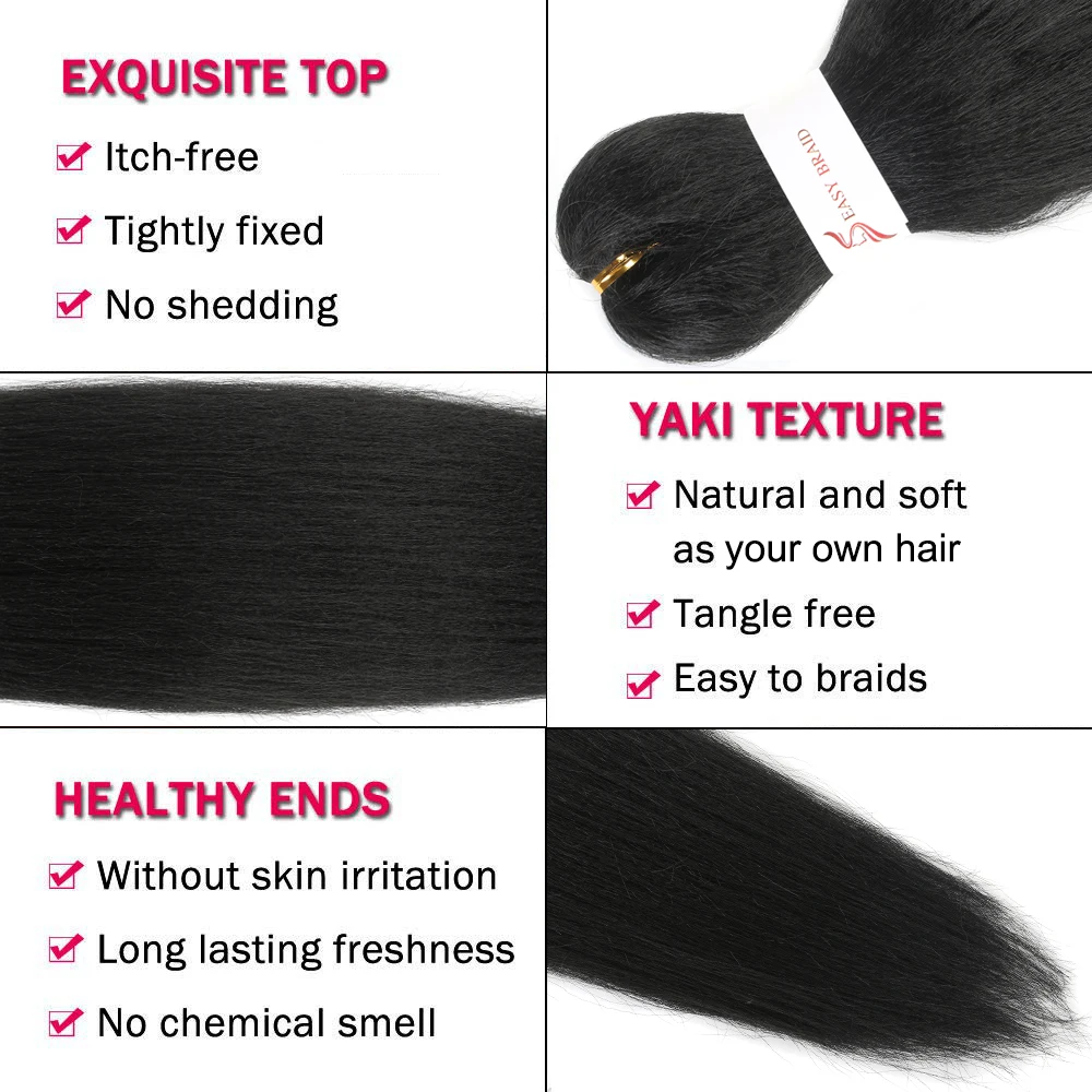 【Hair Material】: Pre Stretched Braiding Hair Made Of High Quality Low Temperature Flame-Retardant Synthetic Fiber. Yaki Texture, Natural Looking And Soft Touch As You Own Hair.