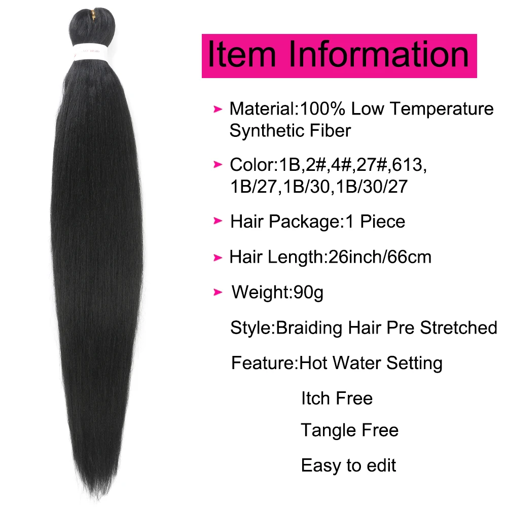 Pre Stretched Braiding Hair 26inch Kanealon for Braids Yaki Straight Synthetic Braids Hair Extension Expressions Braiding Hair